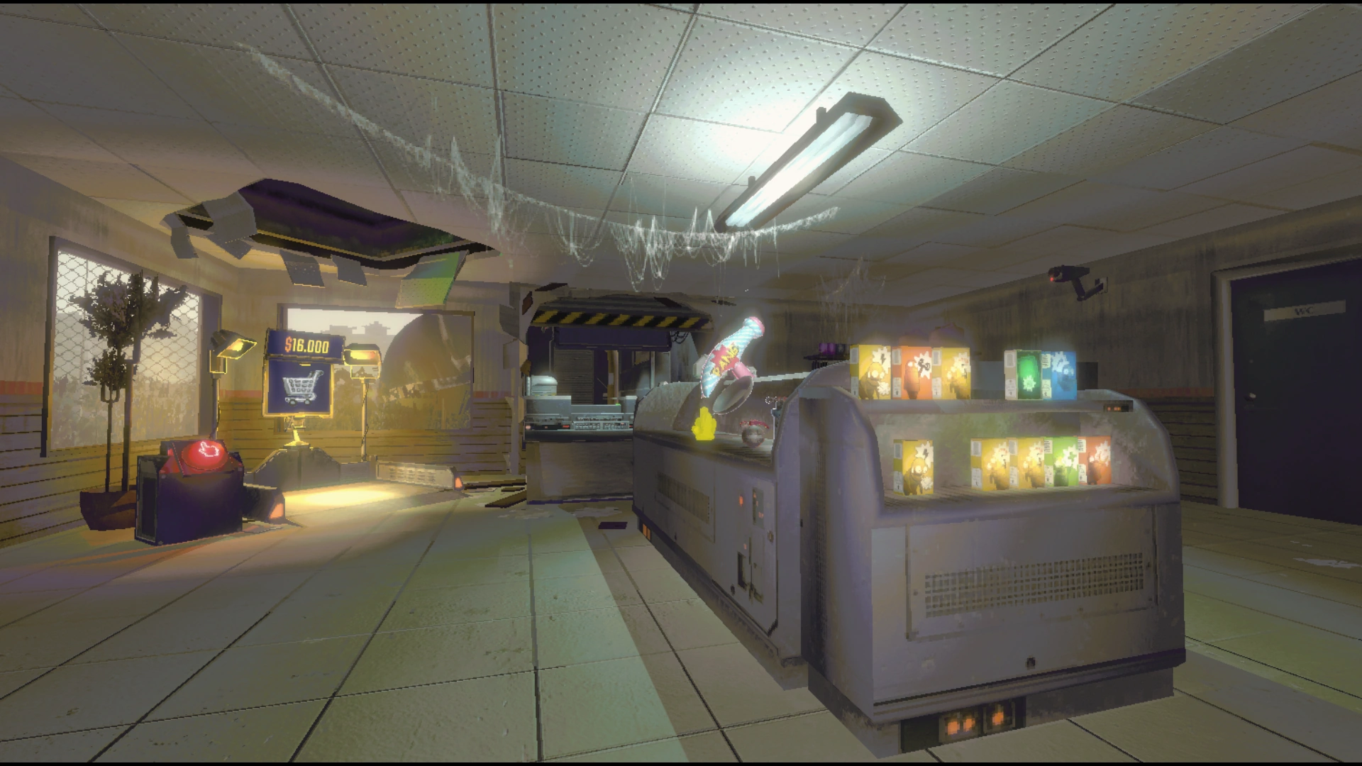 On the Service Station, there is a variety of random items, including weapons, health packs, and upgrades, which can be bought for money earned during missions. There are no monsters on this location. The players are free to test any items available on the Station, as they have infinite ammo here.